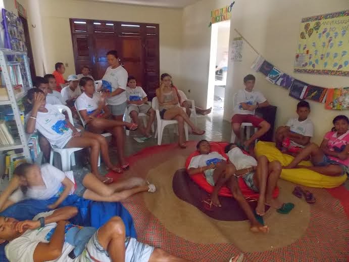 Galerinha hoje reunida para assistir aos vídeos cujas matérias fazem referências ao projeto Essa é a Nossa Praia. Um momento de confraternização regado à pipoca e bebidas. Muito bom!