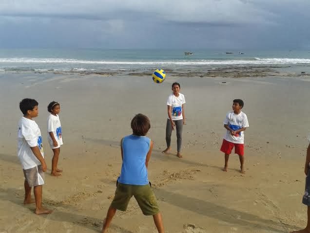 Aqui no projeto, a gente começa o dia com futebol na praia! Formem o time e mostre suas habilidades!